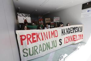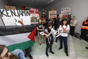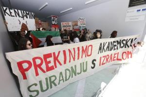 Zagreb, 24.04.2026 - Prosvjed na FPZ protiv jucerasnjeg gosta predavaca Idda Netanyahua