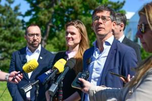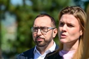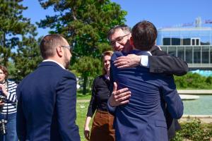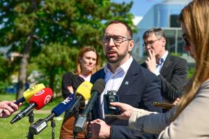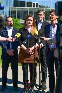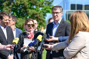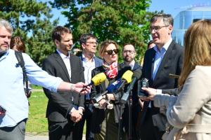 Zagreb, 24.04.2026 - Tomislav Tomasevic i Gergely Karacsony obisli gradiliste Gradske knjiznice...