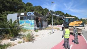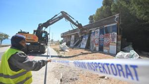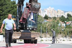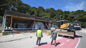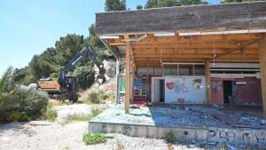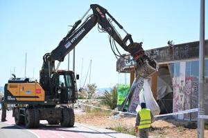 Split, 28.04.2026 - Tvrtka gradjevinskog inspektorata pocela je s rusenjem bespravnog ugostiteljskog...