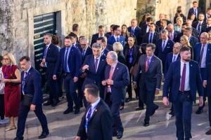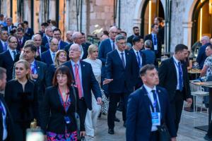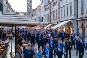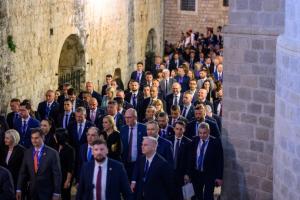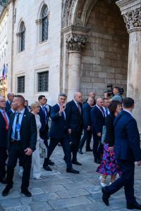 Dubrovnik, 28.04.2026 - Visoki uzvanici summita Inicijativa triju mora prosetali Stradunom