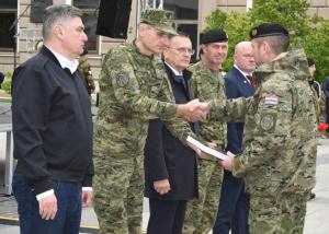 Slavonski Brod, 29.04.2026 - Zoran Milanovic urucio priznanja i beretke pripadnicima 3. gardijske...