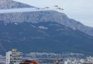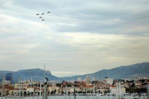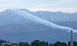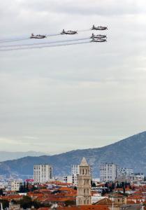 Split,17.10.2025 - Akrobatska grupa Hrvatskog ratnog zrakoplovstva Krila Oluje u preletu iznad...