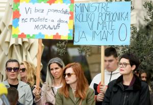 Sibenik, 18.10.2025 - Prosvjed roditelja djece s teskocama u razvoju
