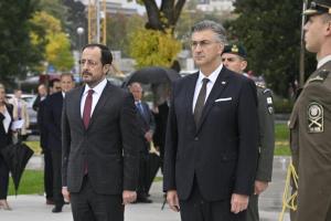 Zagreb, 21.10.2025 - Nikos Christodoulides polozio je vijenac kod Spomenika domovini