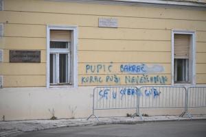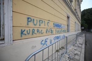 Zadar, 22.10.2025 - Na zgradi Doma zupanije na Poluotoku osvanuo je uvredljivi grafit