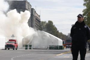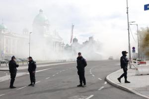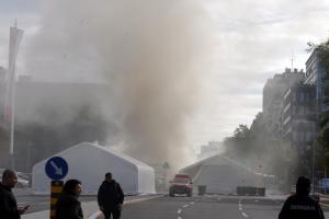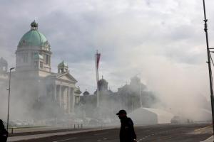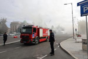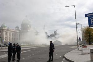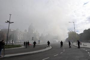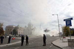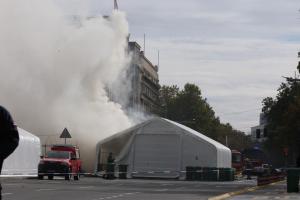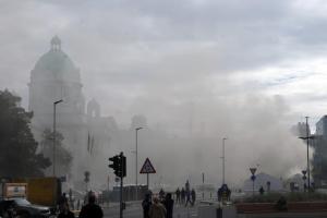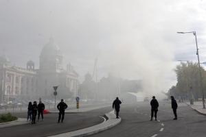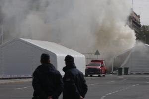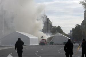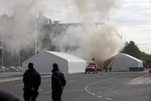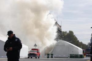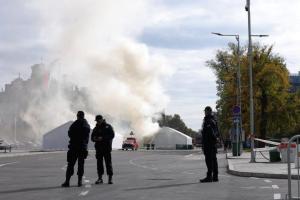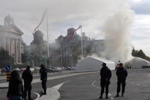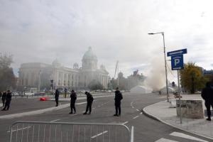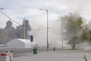 Beograd, 22.10.2025 - U satoru u kojem se okupljaju pristase Aleksandra Vucica izbio je pozar