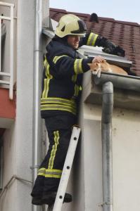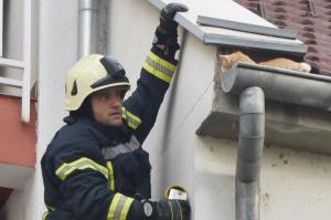 Slavonski Brod, 23.10.2025 - Vatrogasna intervencija spasavanja macke s krova