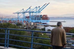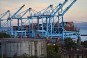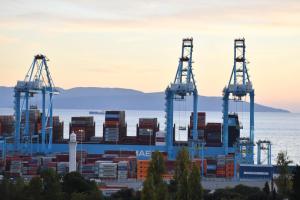 Rijeka, 28.10.2025 - Kontejnerski brod Alva Maersk duzine 350m pristao je na terminalu Rijeka...