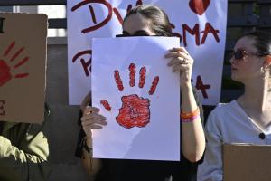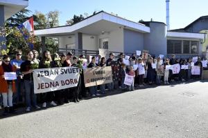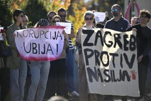 Zagreb, 01.11.2025 - Prosvjed ispred Veleposlanstva Republike Srbije na godisnjicu pada nadstresnice...