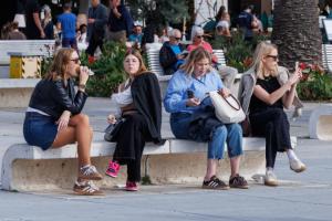 Split, 02.11.2025 - Setaci i kupaci uzivaju u toplom jesenjem danu