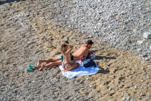 Dubrovnik, 02.11.2025 - Hrabri kupaci na plazi Banje uzivaju u suncanom danu
