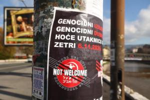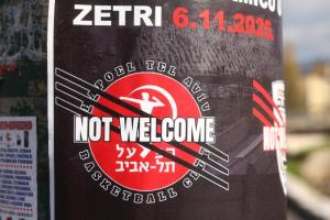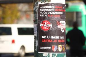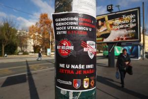 Sarajevo, 04.11.2025 - Postavljeni plakati koji pozivaju na otkazivanje kosarkaske utakmice...