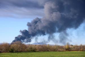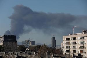 Zagreb, 04.11.2025 - Gusti dim pozara u Svetoj Nedelji vidljiv je u Zagrebu