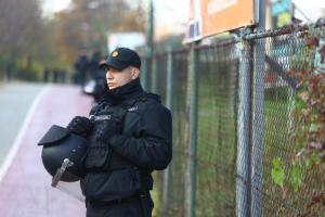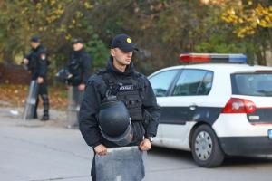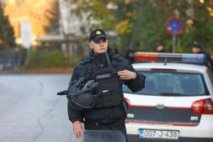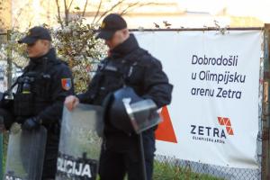 Sarajevo, 06.11.2025 - Policija osigurava prostor oko dvorane Zetra uoci kosarkaske utakmice...