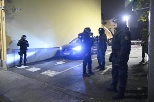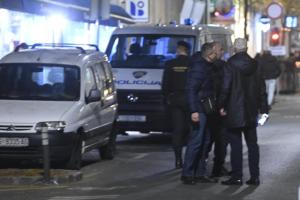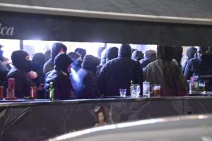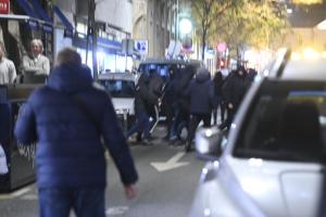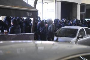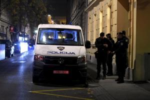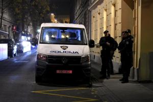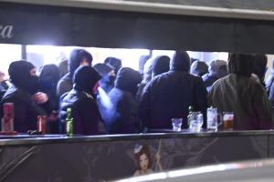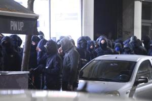 Zagreb, 07.11.2025 - Skupina maskiranih mladica skandira kod Srpskog kulturnog centra