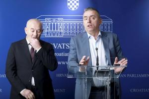 Zagreb, 13.11.2025 - Izjava za medije Predraga Misica i Stipe Mlinarica nakon okruglog stola...