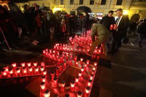 Varazdin, 17.11.2025 - Varazdinci na Trgu kralja Tomislava zapalili lampione u znak sjecanja...