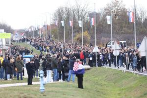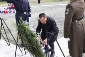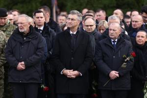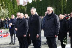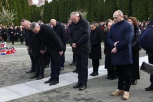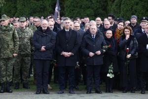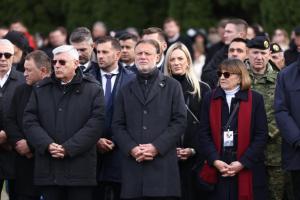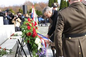 Vukovar, 18.11.2025 - Polaganje vijenaca kod spomen-obiljezja na Memorijalnom groblju zrtava...