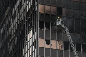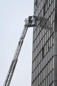 Zagreb, 19.11.2025 - Vatrogasci na zgaristu Vjesnikovog nebodera