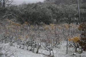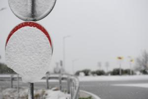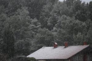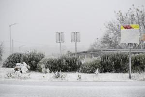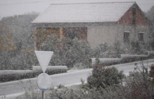 Dubravice, 22.11.2025 - Snijeg nosen jakom burom pada u unutrasnjosti Dalmacije