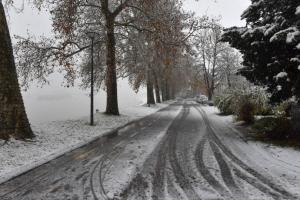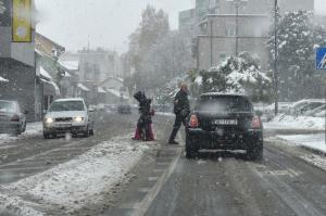 Slavonski Brod, 22.11.2025 - Prvi ovosezonski snijeg u kratkom vremenu zabijelio je ulice grada