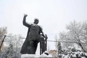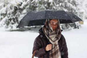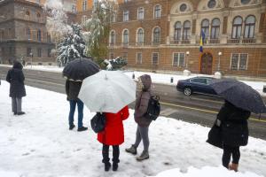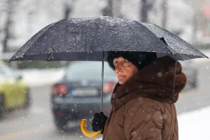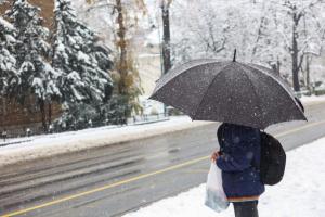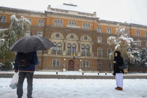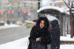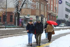 Sarajevo, 22.11.2025 - Setaci na sarajevskim ulicama prekrivenim snijegom