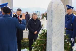 Sarajevo, 25.11.2025 - Povodom Dana drzavnosti BiH Zeljko Komsic i Denis Becirovic polozili...