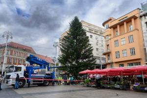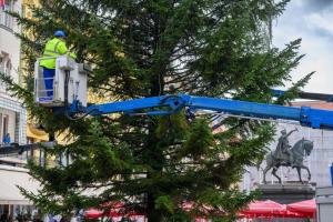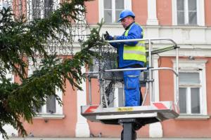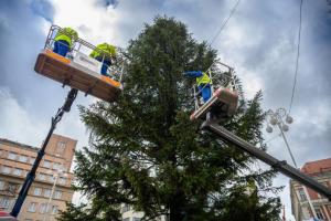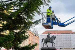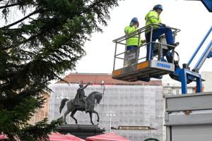 Zagreb, 26.11.2025 - Radnici Zagrebackog holdinga ukrasavaju bor na trgu bana Jelacica povodom...