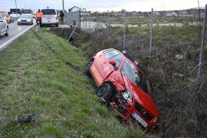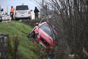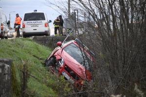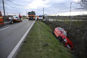 Zagreb, 27.11.2025 - Vatrogasno vozilo zavrsilo u jarku tijekom pozara u skladistu guma u Luzanu