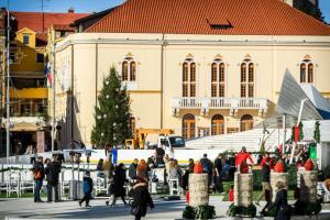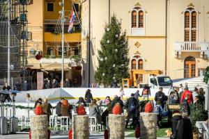 Sibenik, 28.11.2025 - Na Trgu Poljane okicen je bor i postavljeno klizaliste