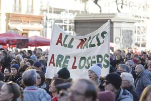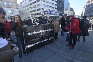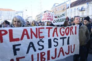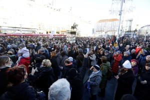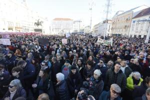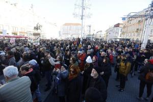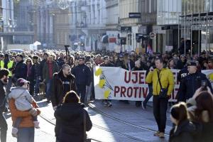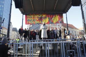 Zagreb, 30.11.2025 - Prosvjedni mars Ujedinjeni protiv fasizma na glavnom gradskom trgu
