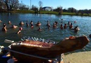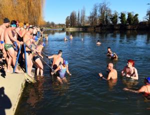 Karlovac, 30.11.2025 - Tradicionalno nedjeljno kupanje u podne u hladnoj Korani