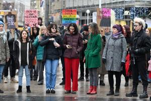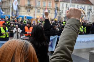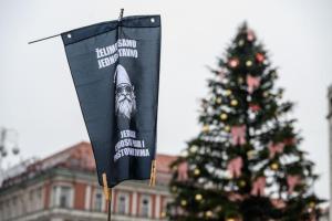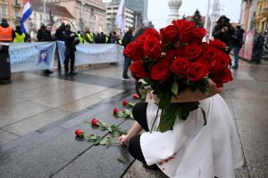 Zagreb, 06.12.2025 - Molitelji i performans Tiha misa na Trgu bana Jelacica