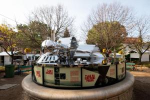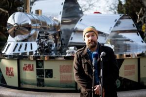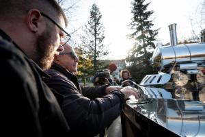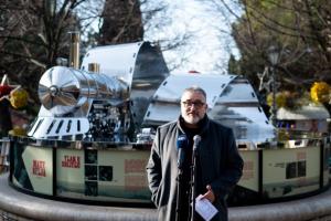 Sibenik, 10.12.2025 - Otkriven ovogodisnji vremenoplov, sredisnja skluptura, Vlak u snijegu