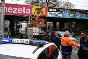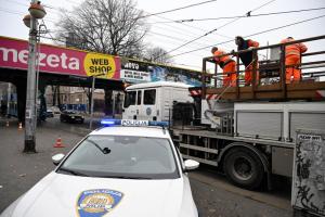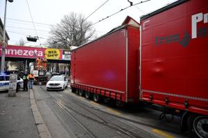Zagreb, 15.12.2025 - Zastoj tramvajskog prometa u Savskoj zbog kamiona koji je potrgao tramvajske...