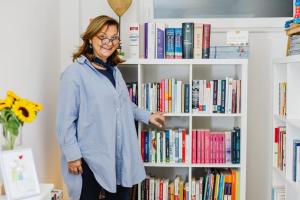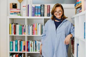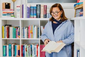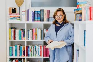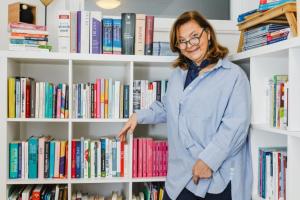 Zagreb, 03.11.2025 - Knjizevnica Sanja Polak ispred svoje police s knjigama