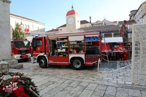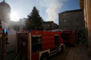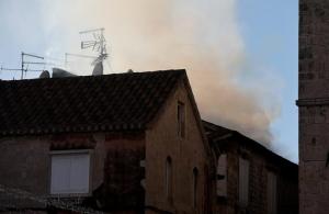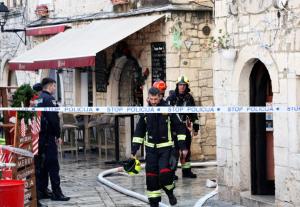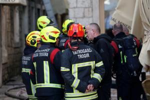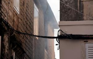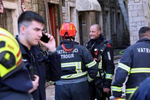 Trogir, 20.12.2025 - Vatrogasci gase pozar koji je zahvatio cijeli blok kuca u staroj jezgri...