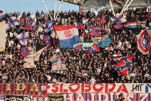 Split, 21.12.2025 - Nogomet: Navijaci na utakmici Hajduk - Vukovar 1991