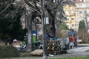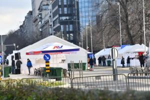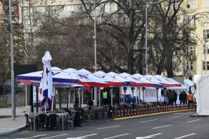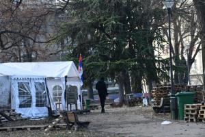 Beograd, 28.12.2025 - Veceras ce biti uklonjeno satorsko naselje ispred Skupstine Srbije