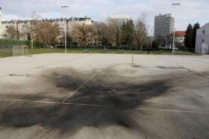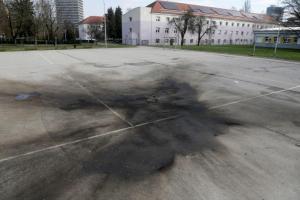 Zagreb, 30.12.2025 - Na skolskom igralistu OS Julija Klovica vidljivi tragovi sinocnje eksplozije
