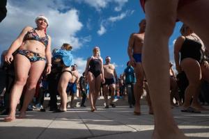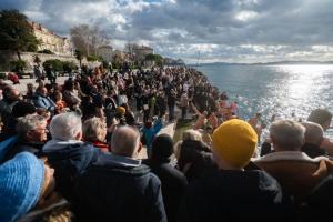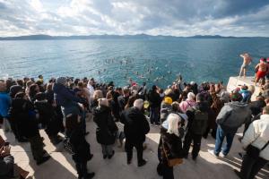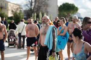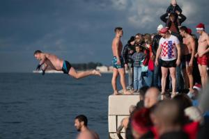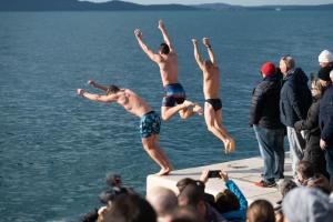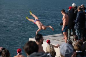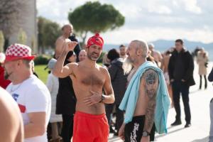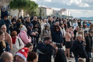 Zadar, 01.01.2026 - Na Morskim oguljama organizirano deseto tradicionalno kupanje za Novu godinu