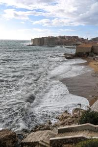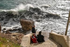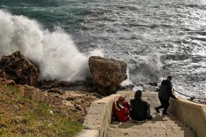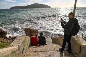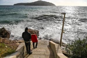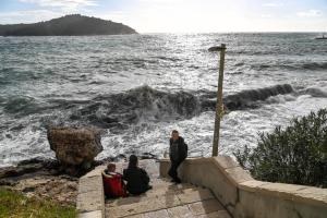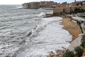 Dubrovnik, 02.01.2026 - Snazno jugo podiglo velike valove na plazi Banje i pod zidinama
