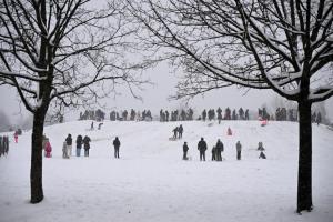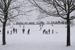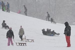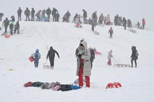 Zagreb, 06.01.2026 - Sanjkanje i druge zimske radosti u naselju Dubrava