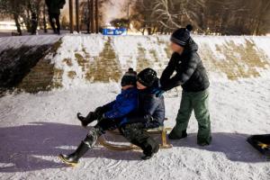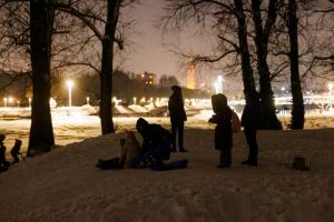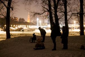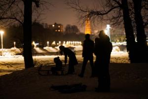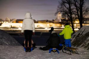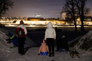 Osijek, 08.01.2026 - Djeca u nocnom sanjkanju u gradu