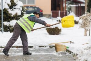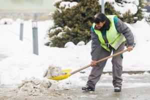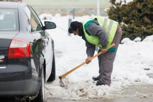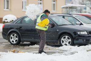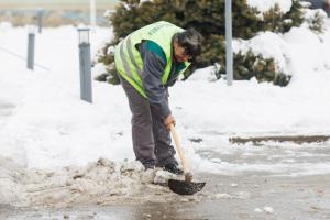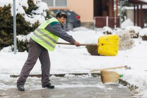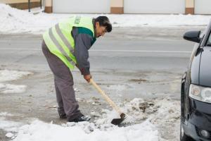 Podgorac, 09.01.2026 - Pedesetsedmogodisnja djelatnica Komunalca Opcine Podgorac cisti parking