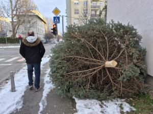 Zagreb, 13.01.2026 - Veliko bozicno drvce odbaceno na nogostupu u naselju Knezija