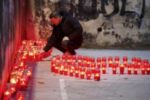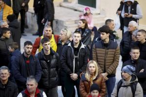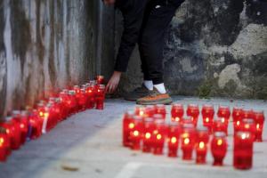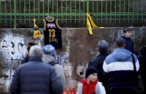 Split, 15.01.2026 - Paljenjem svijeca Splicani se oprastaju od bivseg kosarkaska i trenera...