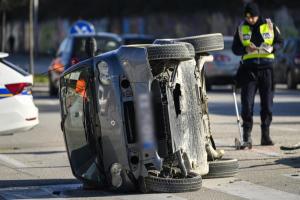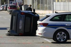 Split, 20.01.2026 - Smart se prevrnuo u prometnoj nesreci u ulici Put Supavla