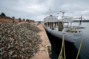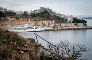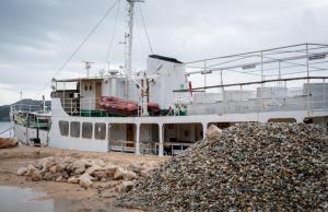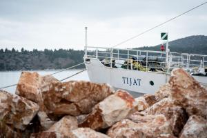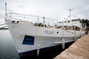 Sibenik, 22.01.2026 - Bivsi putnicki brod Jadrolinije Tijat na vezu u luci TEF