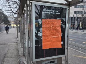 Zagreb, 23.01.2026 - Plakat s pricom o nesretnoj ljubavi na tramvajskoj stanici